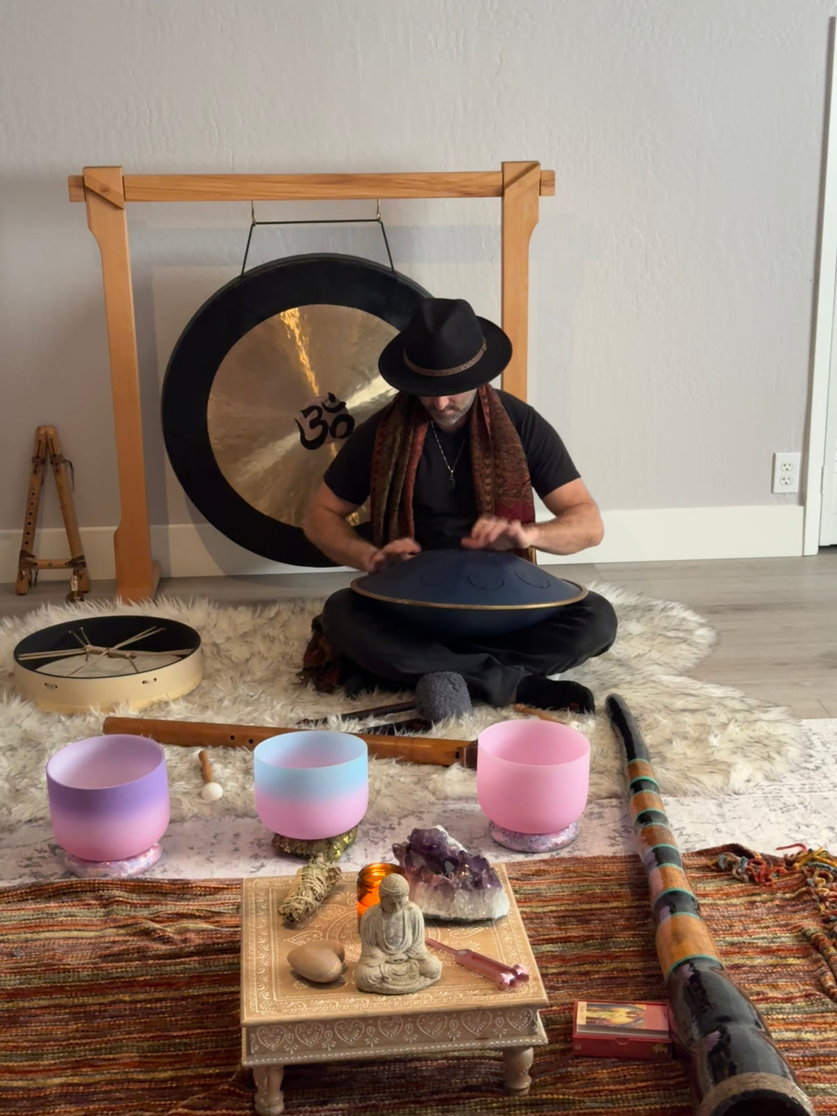 Ben's sound baths are truly magical experiences, revealing his unique mastery of intuitively orchestrating a tapestry of sounds and vibrations through a diverse collection of instruments including singing bowls, gongs, chimes, drums, didgeridoo, flutes, and more. Whether you experience this solo, as a couple, or in a small gathering, Ben's intuitive ability to create transformative soundscapes guides participants into profound states of relaxation, inner peace, and spiritual connection. Occasionally, Ben invites featured guest musicians to collaborate, enriching the healing journey with their unique gifts.